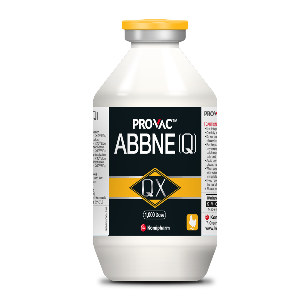 Spray method: Reconstitute the vaccine in freeze-drying form in vial with sterilized distilled water, and spray it (spray droplet size: 110 ㎛) above the chickens so that it could be spread evenly over the chickens through nostril or eye.